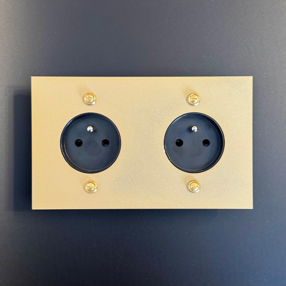 Fixation par vis et rondelles laiton (fournies), pour boîtier d’encastrement standard.