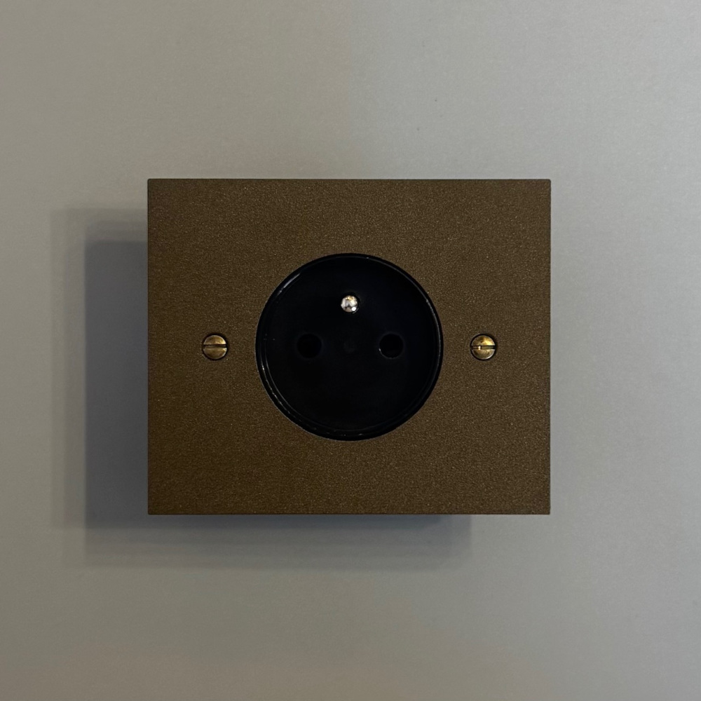 Fixation par vis bronze (fournies), pour boîtier d’encastrement standard.