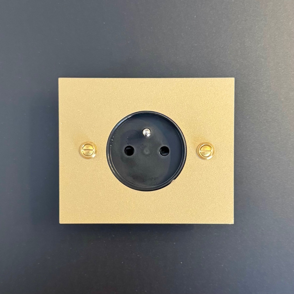 par vis et rondelles laiton (fournies), pour boîtier d’encastrement standard.